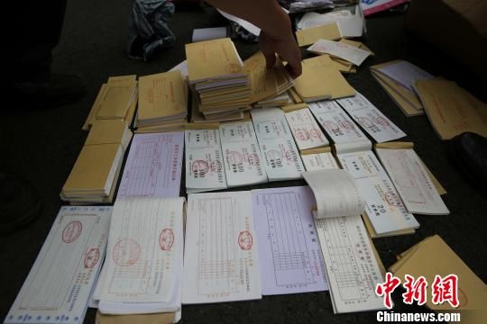 图为武汉警方收缴的假发票。