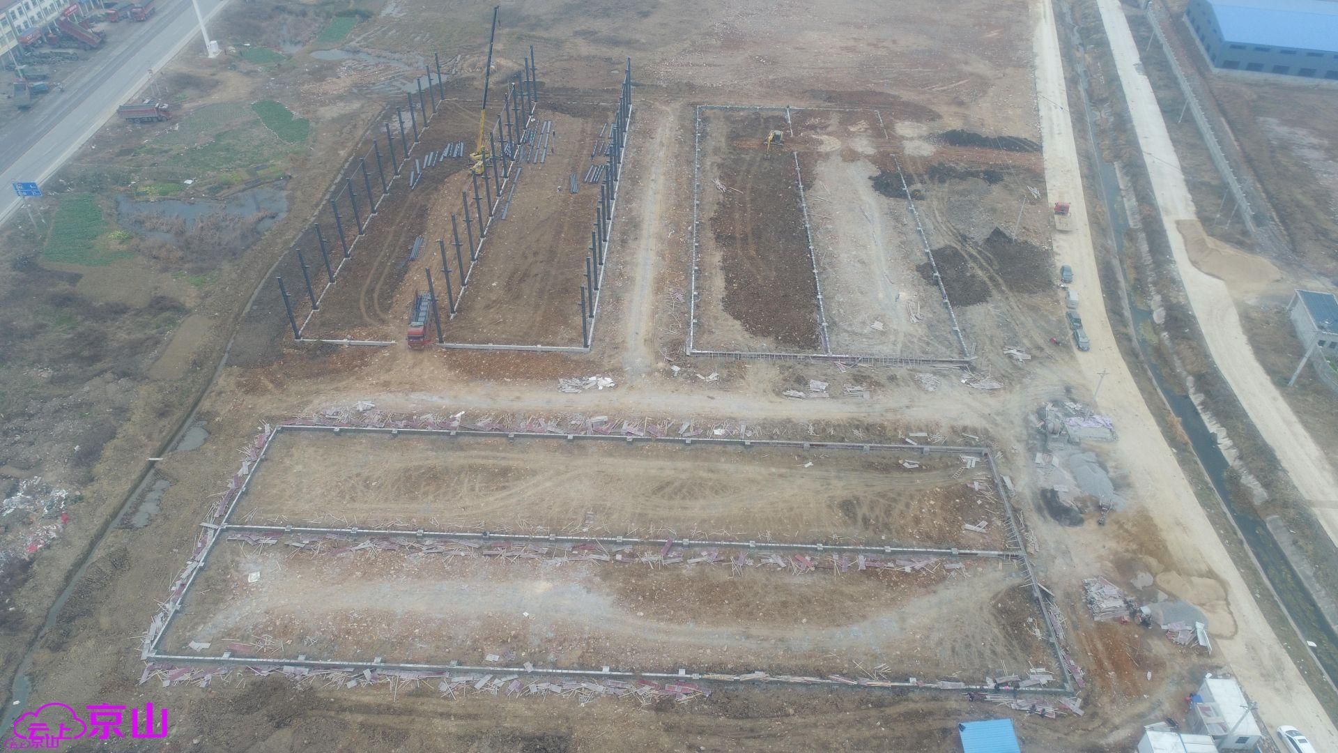 该项目占地108亩,总建筑面积59491.25㎡,计划总投资2.462亿元,这是钱场镇大力实施乡村振兴战略,推进“满园工程”的重要抓手。目前12000平方米的8#、9#、10#标准钢构厂房抗风柱全部吊装完成,到4月底三栋厂房可全面建设完工并交付使用,企业即可入住。