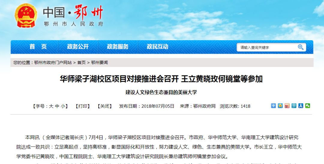 华师官微则表示:梁子湖校区是关系该校下一个百年发展的重大项目。