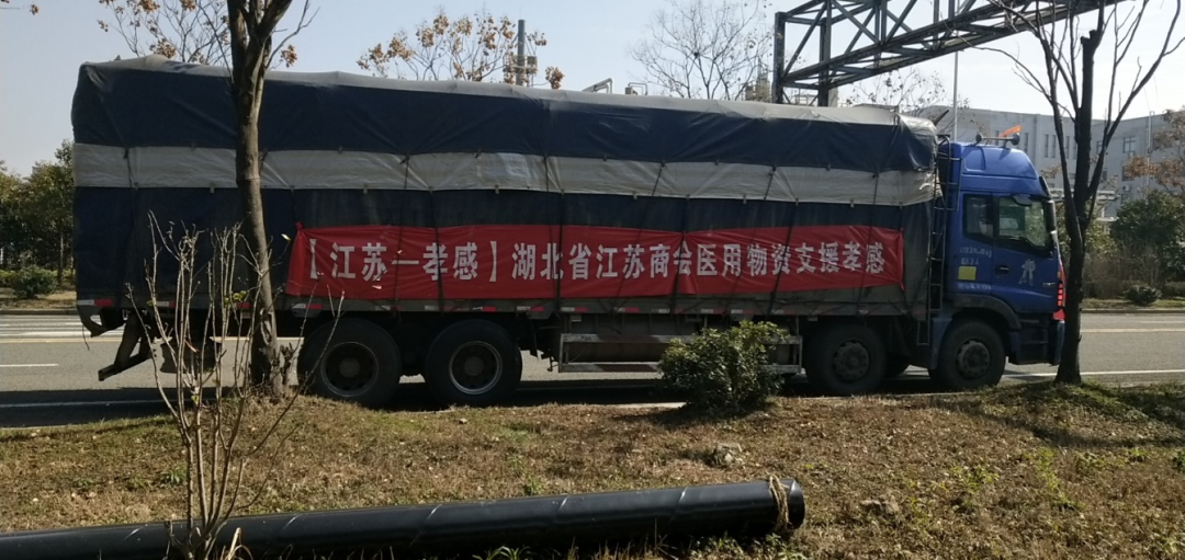 2月初,孝感市新冠肺炎防控指挥部发布紧急求助,防疫物资告急。湖北省江苏商会与孝感市疫情防控领导小组联系,2月10日,将6.3吨医用酒精从江苏南京运达孝感。同时,还联系捐赠20万副医用丁晴防护手套支援孝感。