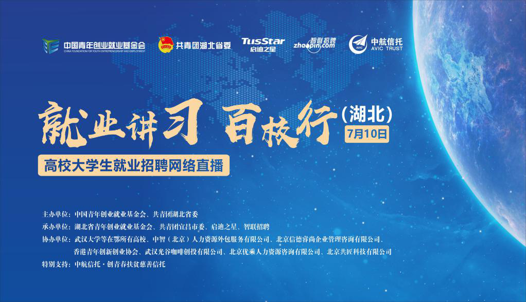 为解决高校毕业生“就业难”问题,共青团湖北省委、中国青年创业就业基金会联合湖北省青年创业就业基金会、共青团宜昌市委共同举办“就业讲习百校行”湖北高校大学生就业招聘网络直播活动。