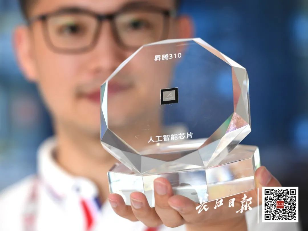 长江鲲鹏生态创新中心展示的昇腾310人工智能芯片。记者高勇 摄