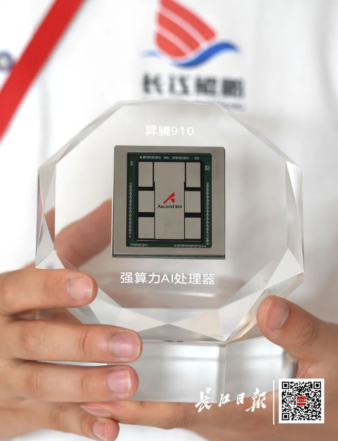 长江鲲鹏生态创新中心展示的昇腾910强算力AI处理器。记者高勇 摄