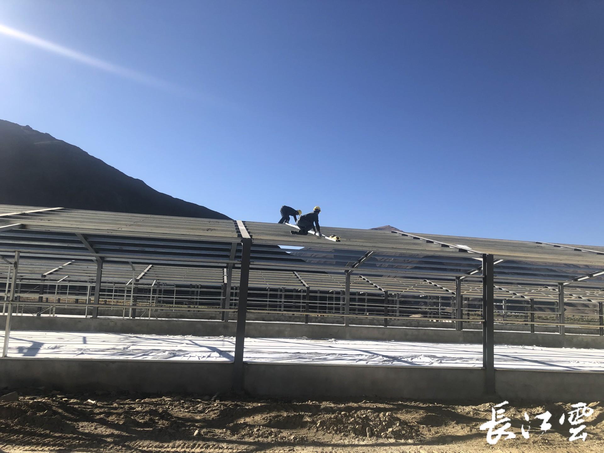 西藏山南市乃东区颇章乡布仁沟,工人正在百万藏鸡产业园紧张施工中