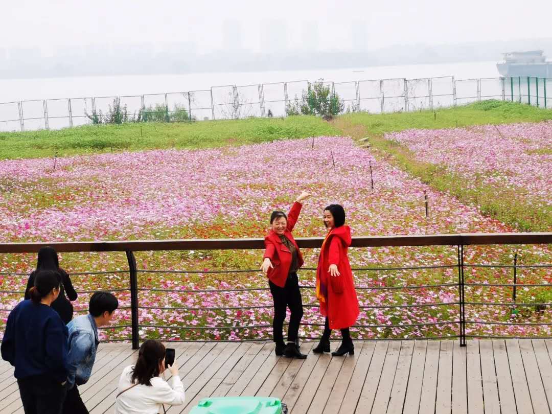 据了解,这片网红花海以前是一座小码头,随着黄石市开展非法码头整治,加强长江岸线修复治理工作,在2019年将以前的小码头建成了美丽公园。市民们置身其间,纷纷拿相机定格时光,留住这份美好。