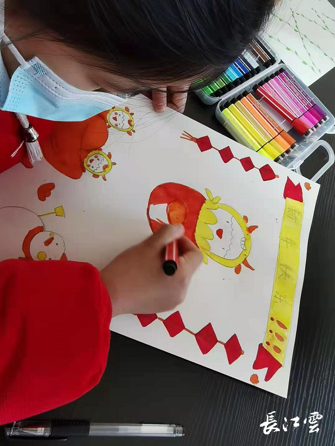 农历新年将至,黄石经济开发区·铁山区汪仁镇庆洪村的文化礼堂里好不热闹,在志愿者的帮助下,12名留守儿童正在画年画,您瞧,健壮的公牛,金晃晃的元宝,还有喜庆的爆竹,一幅幅年画既充满了童趣,也让孩子们品尝到过年的味道。
