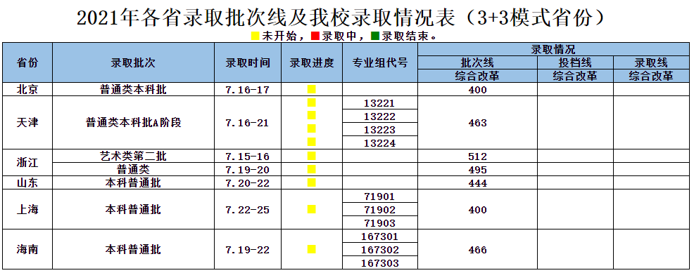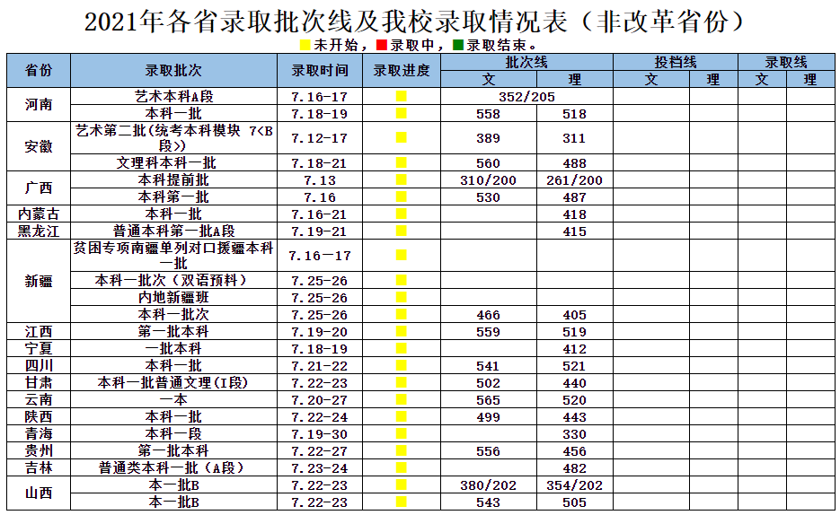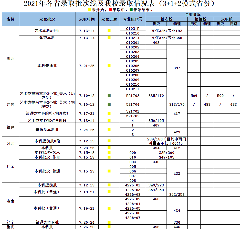 2021年各省录取批次线及武汉科技大学校录取情况表