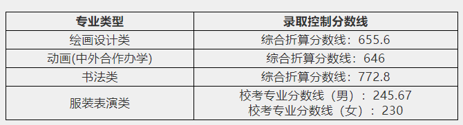 1、绘画设计类、动画(中外合作办学):综合折算方式:(高考文化成绩×0.4+校考专业成绩×0.6)×2。