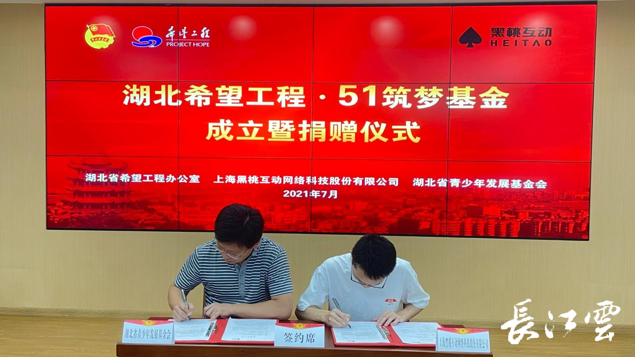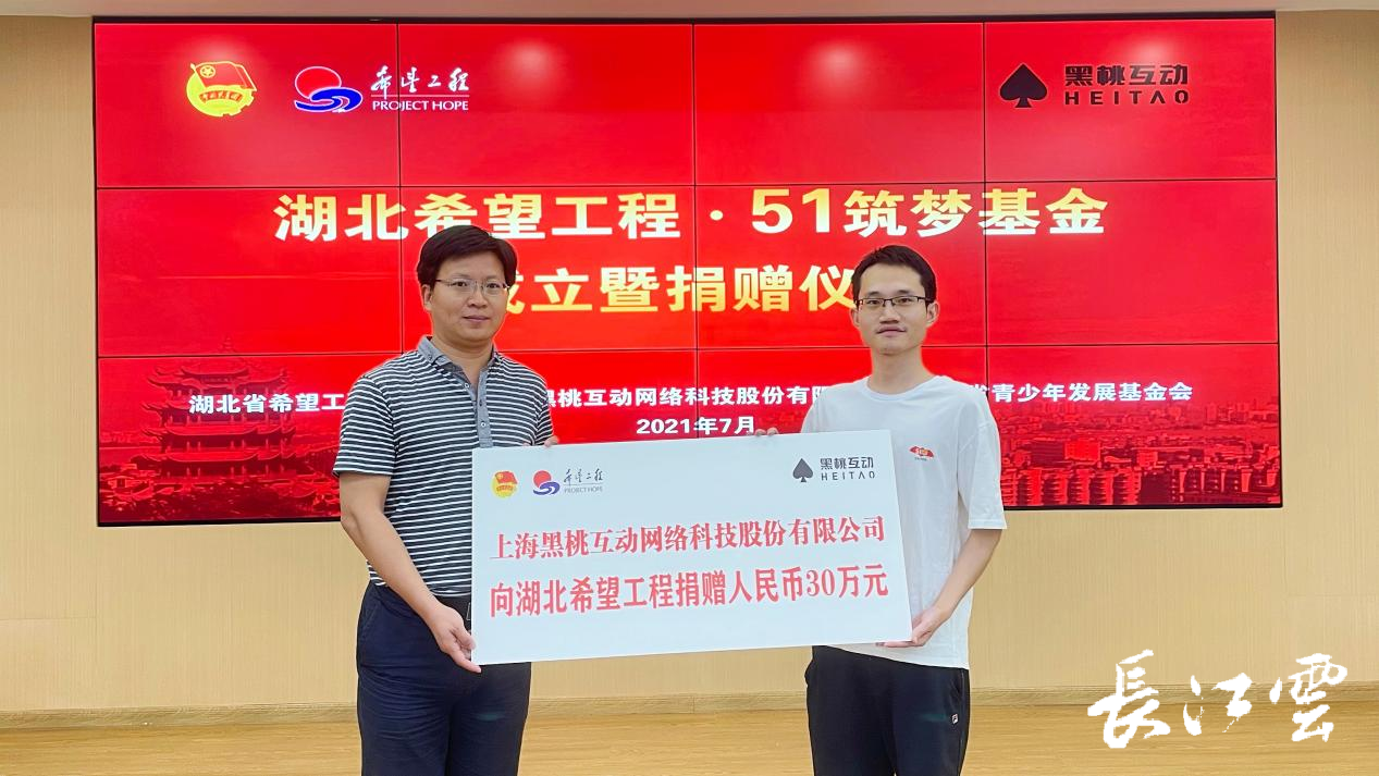 2021年7月23日下午,“湖北希望工程·51筑梦基金”成立暨捐赠仪式在汉举行。省希望工程办公室、省青基会及上海黑桃互动网络科技有限公司有关负责人参加活动。