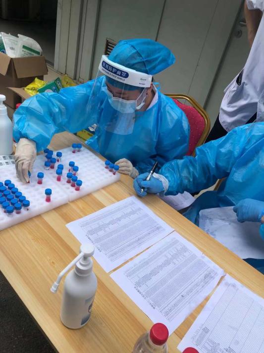 为保障此次核酸检测工作的高效完成,前期民族街道对项目工地人员进行了摸排工作。先由工地负责人上报需检测工地人员名单,街道根据名单信息统筹力量,组织开展第二轮核酸检测工作。当天上午十点四十左右,所有工地第二轮核酸检测工作顺利完成。其中,在中建三局武汉嘉里项目工地,共设置四个位点同时采样,130名工地待测人员在短短一个小时内全部采集结束。结束后,防疫工作者们立即对采样点进行了消杀。