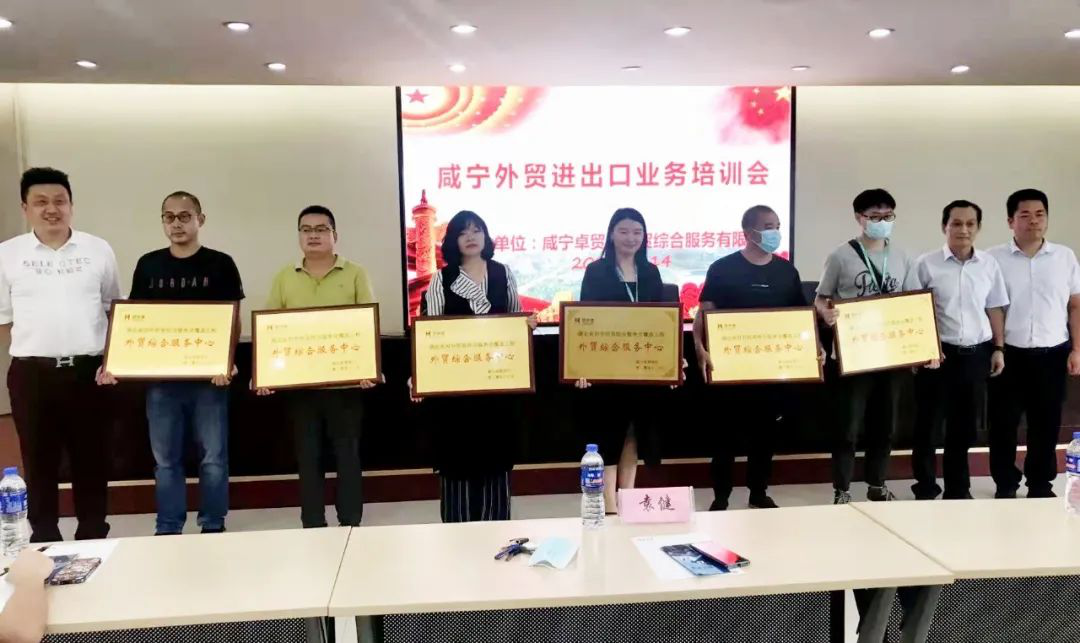 会上,咸宁市商务局为咸安、赤壁、嘉鱼、崇阳、通山、通城外贸综合服务中心进行了“湖北省对外贸易综合服务全覆盖工程——外贸综合服务中心”授牌仪式,这标志着咸宁市外贸综合服务全覆盖工作顺利完成。咸宁市所有的七家外贸综合服务中心均由卓贸通外综服平台承接运营。