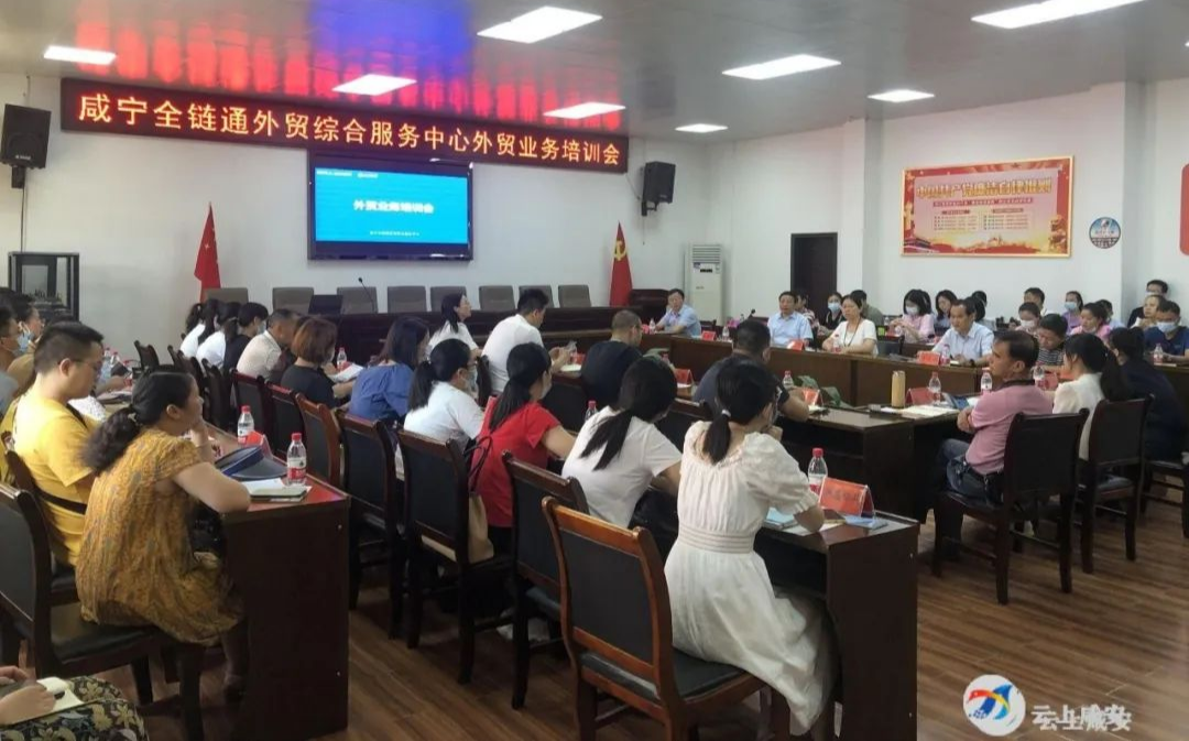 当天上午,9月14日上午,咸宁市商务局、咸安区商务局还联合经开区外贸综合服务中心组织召开咸宁全链通外贸综合服务中心外贸业务培训会,武昌海关驻咸宁办事处、区税务局、中信保及全区35家进出口企业代表参会。