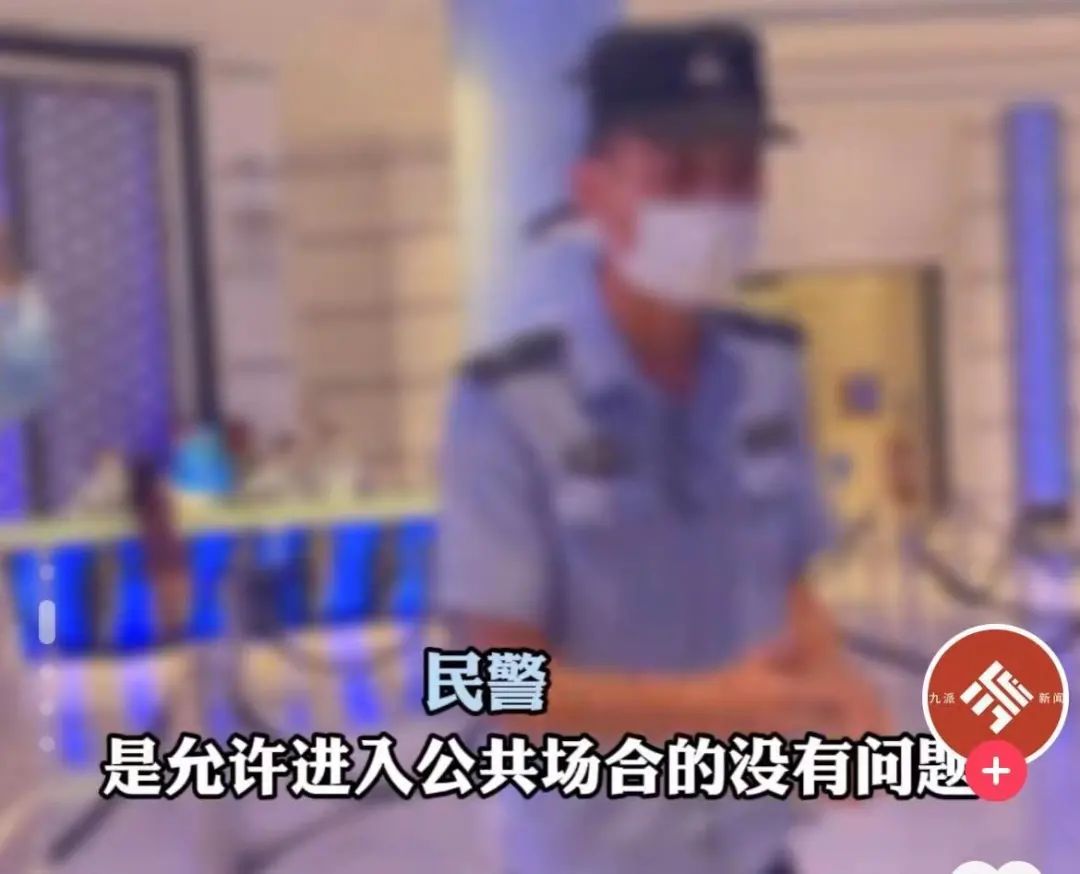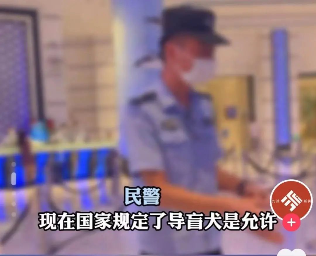 一名疑似酒店工作人员的男子在电话中称,该酒店目前暂时没有无障碍相关的(条例),且酒店餐厅不允许导盲犬进入。视频中,有身穿警服的人员到场协调。