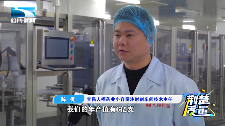 宜昌人福药业小容量注射剂车间技术主任 陈侃:“我们的车间一共有6条生产线,我们的年产值有6亿支,车间共有5个产品,出口了17个国家及地区。”