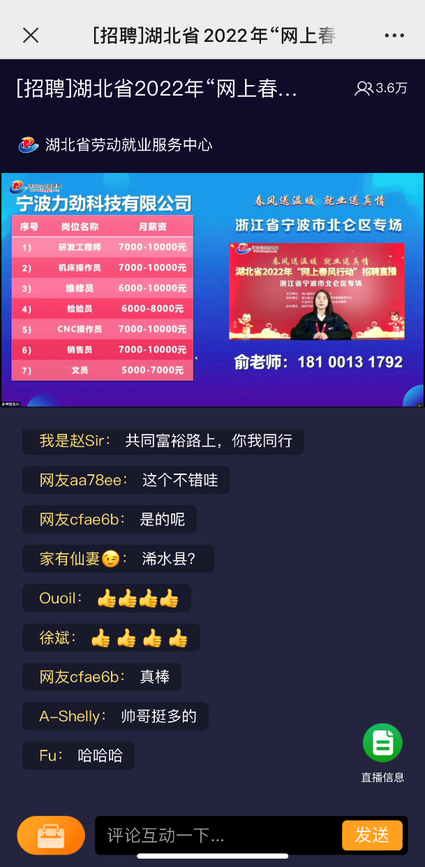 湖北省2022年“网上春风行动”招聘直播浙江宁波专场举行