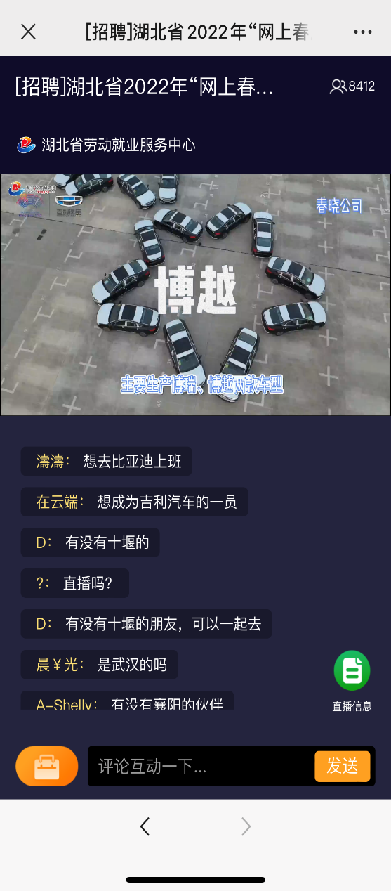 直播间里,求职者对招聘岗位兴趣浓厚、互动热烈