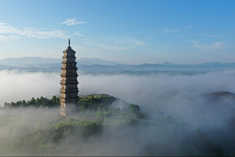 踏花归来看柏塔。在阎家河镇柏子塔村,有一座国家级文物保护单位柏子塔。据《麻城县志》记载,柏子塔建于唐建中四年(公元783年),距今已有1200多年历史,虽饱经沧桑依然屹立。柏子塔耸立在九龙山,塔身为六边形楼阁式砖塔,造型优美,结构精巧,除少量横木外,全部由特制的青砖砌成,唐代建筑风格明显。