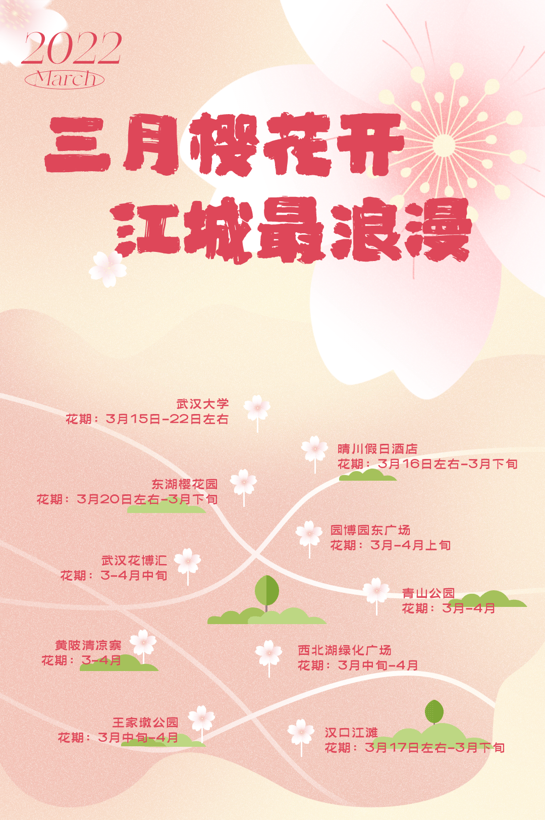 “相约春天赏樱花”——两年前的三月,我们许下这个约定,如今,又是一年樱花绽放的美丽时节,灵秀湖北,姹紫嫣红,荆楚大地,“樱”你而美。