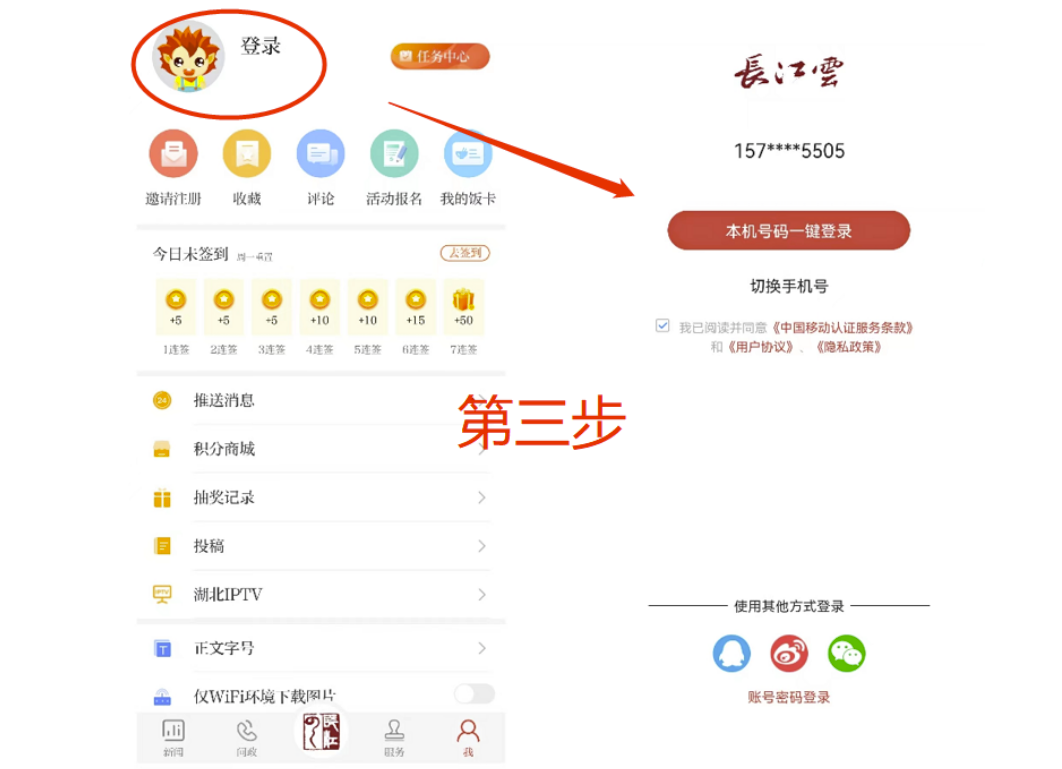 第三步:下载长江云客户端,并使用注册电话号码登录。