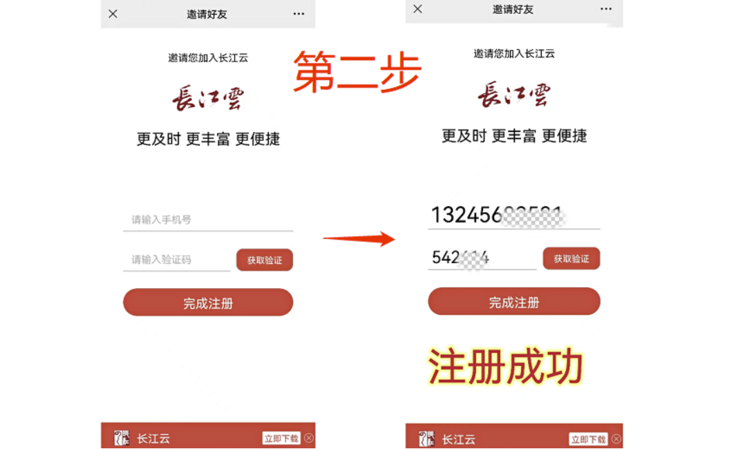 第二步:使用电话号码,注册成为长江云客户端用户;