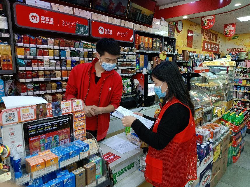 武南村社区辖区内有126家商铺门面,社区党委组织网格员、志愿者成立了日常防疫巡查组,每天对商铺进行巡查、提醒,做到一日两巡、不漏一户。