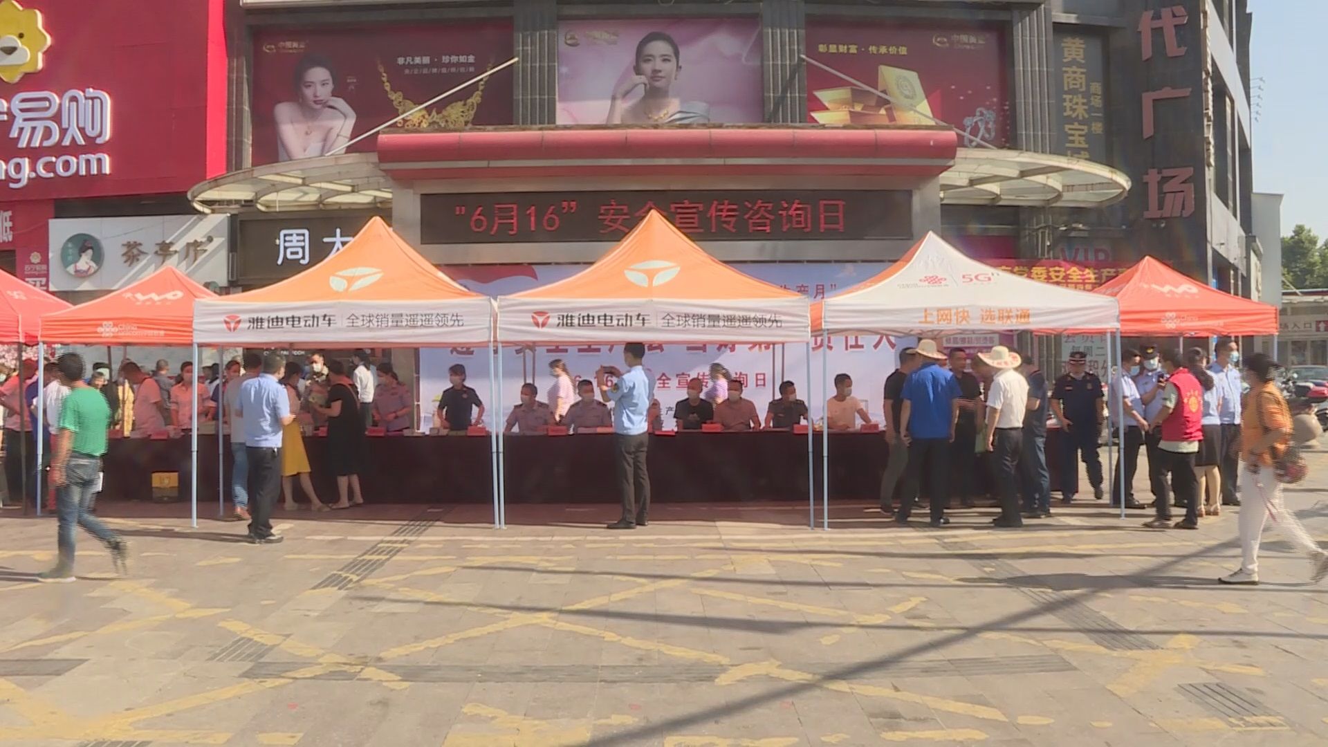 6月16日,大悟县安全生产委员会办公室、县应急管理局联合各成员单位在黄商购物中心门口,开展第21个安全生产月集中宣传活动,大悟县融媒体中心全程进行网络直播,向广大网友宣传安全生产知识。