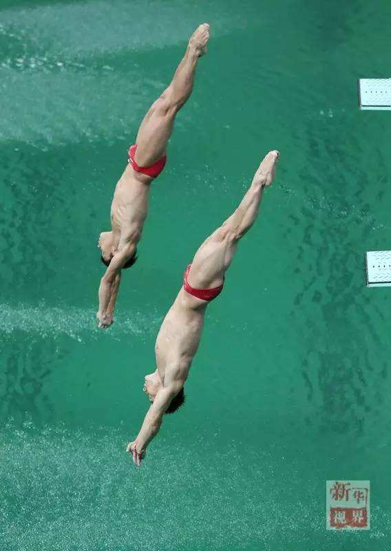 △秦凯(前)/曹缘在里约奥运会跳水男子双人三米板决赛中。 新华社记者曹灿摄