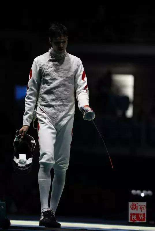 △在里约奥运会男子花剑个人赛32强赛中,雷声以9比15不敌法国选手佩舒,无缘16强。这是雷声赛后离场。新华社记者费茂华摄