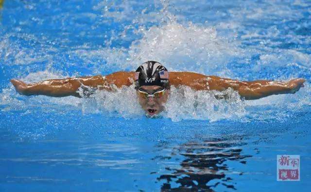 △菲尔普斯在里约奥运会游泳比赛男子4x100米混合泳接力决赛中。 新华社记者李尕摄