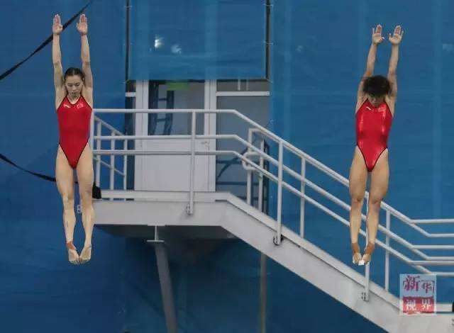 △吴敏霞(左)和施廷懋在比赛中。新华社记者曹灿摄