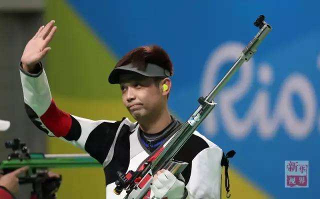 △在里约奥运会射击男子50米步枪三姿决赛中,朱启南获得第六名。这是朱启南赛后向观众致意。新华社记者曹灿摄