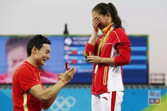△秦凯(左)向队友何姿求婚并获成功。新华社记者丁旭摄