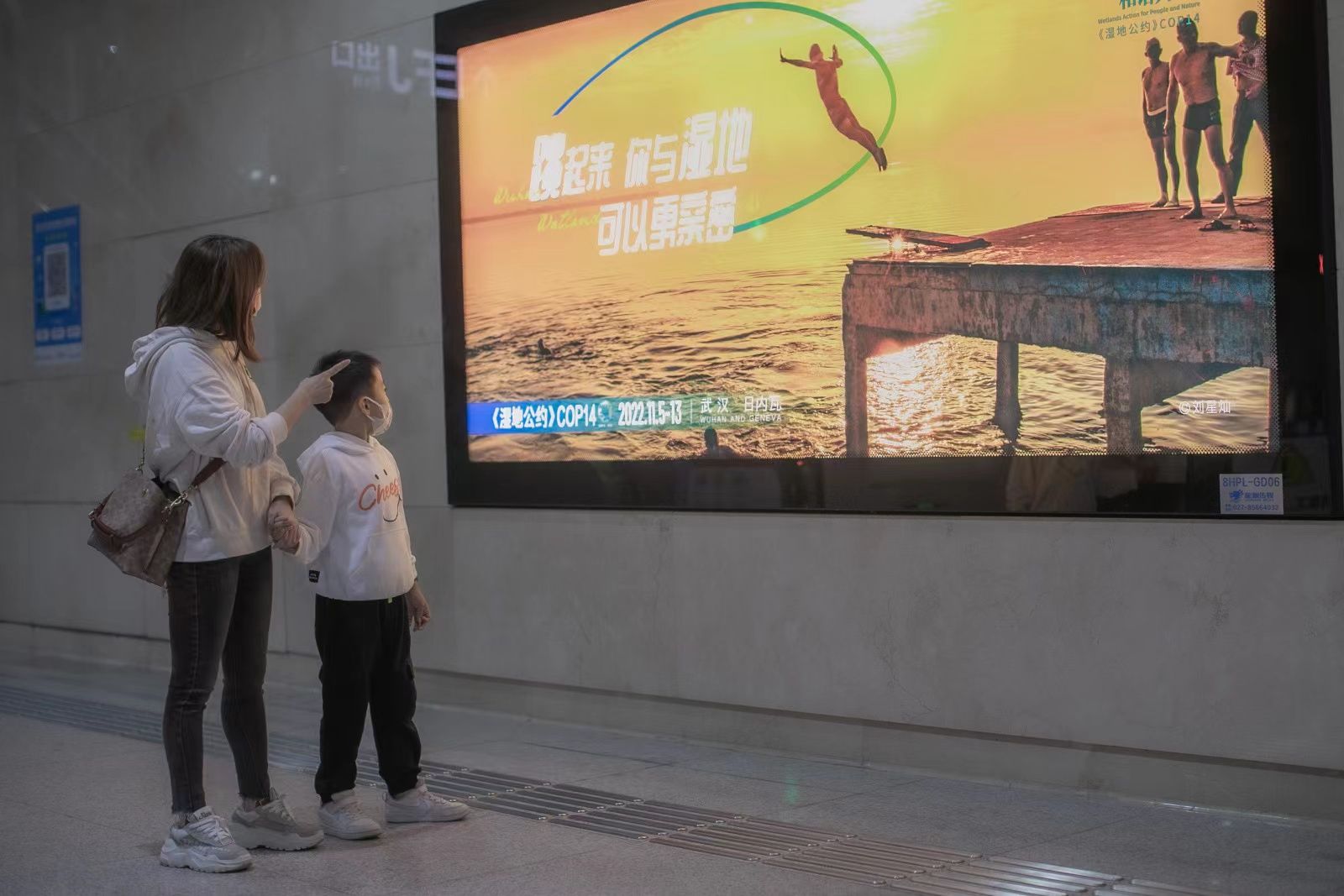 走进8号线黄浦路站和梨园站,三组湿地大会主题宣传灯箱映入眼帘,分别以城市形象、湿地生活和湿地生灵为主题,吸引不少市民驻足拍照打卡。一张张精美大片,尽显武汉生态之美和市民亲水、乐水之趣,展开了一幅幅城市与湿地、人与自然和谐共生的美好画卷。
