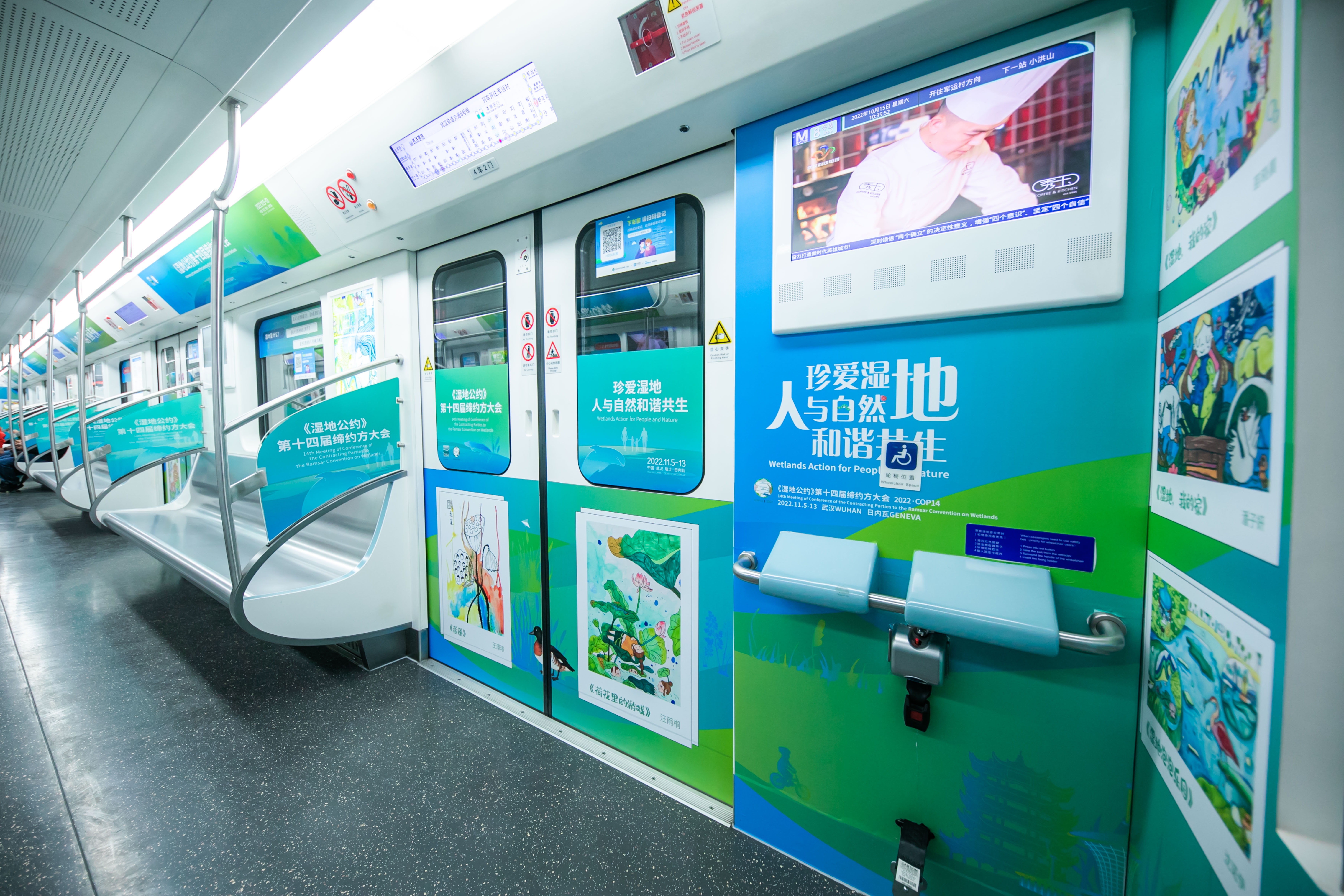 你知道湿地是什么吗?不妨在地铁上找答案。10月15日起,武汉地铁“梦幻湿地童画专列”正式亮相地铁8号线,为即将到来的《湿地公约》第十四届缔约方大会渲染浓浓的氛围。