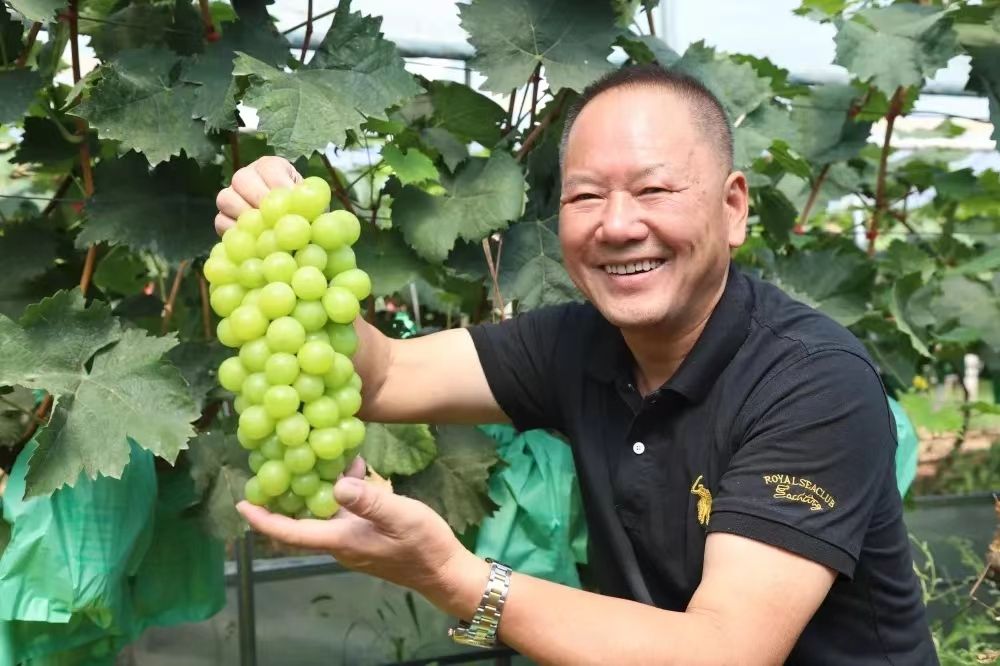 走进阳光玫瑰种植基地,放眼望去,一座座大棚整齐划一;走进大棚,行行畦陇上一架架葡萄生机盎然;拨开枝叶,青绿色纸袋中串串葡萄宛如一粒粒宝石;轻轻呼吸,阵阵清香渗入心间,一点点撞击着味蕾。基地负责人时丙才与村民正在对采摘后的葡萄进行分拣,丰收的喜悦洋溢在每个人的脸上。“我品尝过很多地方的阳光玫瑰,2019年在旬邑试种的阳光玫瑰甜而不腻、脆而不硬、汁多皮薄,可以说是上乘佳品。惊喜的同时决定在旬邑扎根发展各种名优特色水果。”