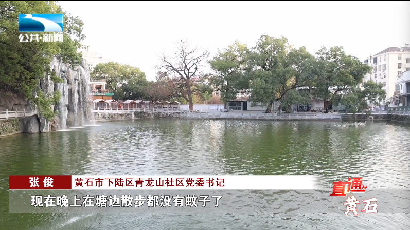 黄石市下陆区青龙山社区党委书记 张俊:“顺着居民提供的线索,把这个井重新打通了。目前我们大屋湾这个塘水质是很清澈的,现在晚上在塘边散步都没有蚊子了,说明水质变好了。”