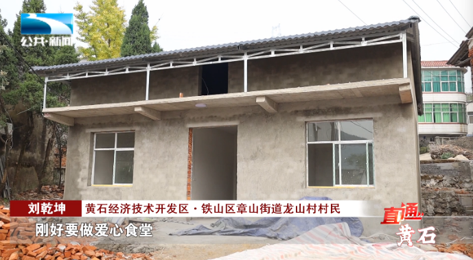 黄石经济技术开发区·铁山区章山街道龙山村村民 刘乾坤:“我家这个房子在我们村里最中心的路段,相当于大门口一样。现在村里在搞共同缔造,刚好要做爱心食堂,所以我自己出资把房子建起来。”