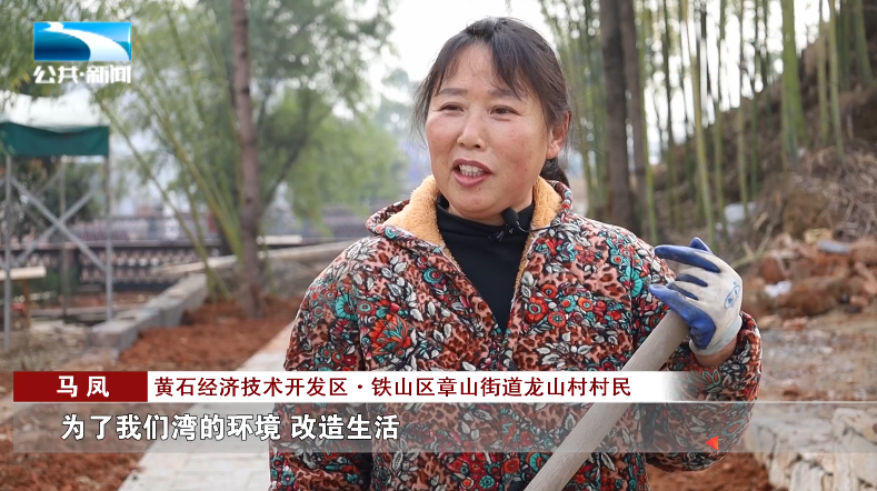 黄石经济技术开发区·铁山区章山街道龙山村村民 马凤:“为了我们湾的环境改造生活,让环境美好一点,住起来舒服一点,贡献自己的微薄之力。公园做起来,我们跳跳广场舞,小孩玩玩,环境好,对人的身体也好。”