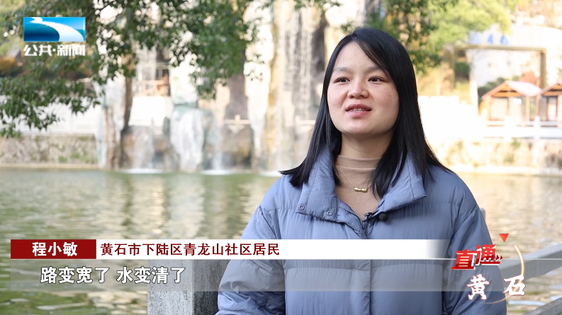 黄石市下陆区青龙山社区居民 程小敏:“大屋湾改造以来,路变宽了、水变清了,人生活在大屋湾也感觉非常惬意。我会跟家人朋友一起围着清水塘转一转,也会晚上的时候上山上去看一下灯光秀,觉得住在这里非常惬意。”