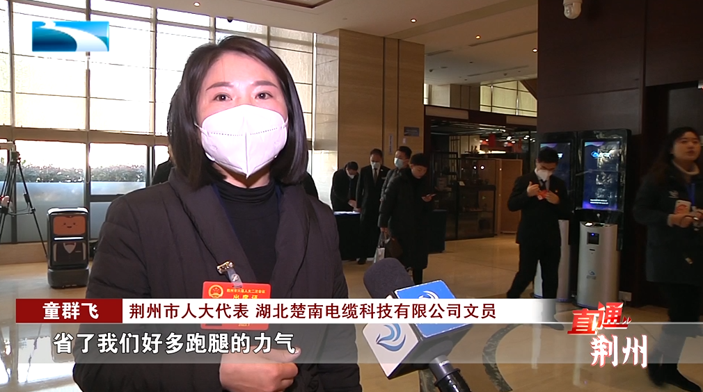 荆州市人大代表、湖北楚南电缆科技有限公司文员 童群飞:“一站式服务,省了我们好多跑腿的力气,对于我们企业来说更加快捷、更加方便。”