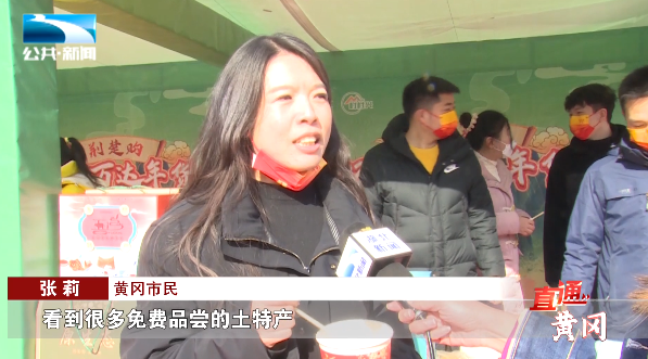 黄冈市民 张莉:“打年货,看到很多免费品尝的土特产,我刚刚尝了一下,这个鱼丸特别好吃,肉质很细腻,很Q弹。”