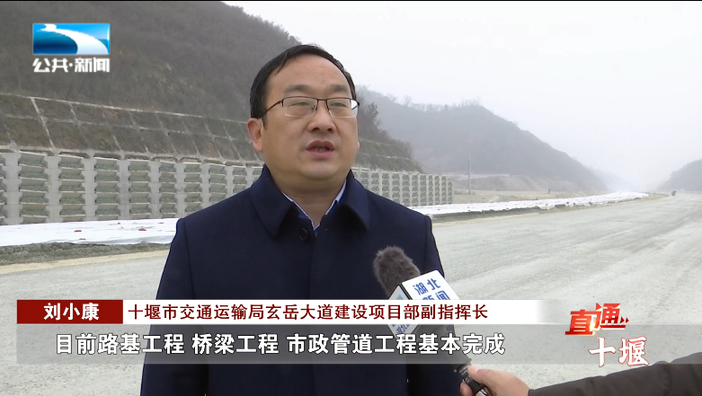 十堰市交通运输局玄岳大道建设项目部副指挥长 刘小康:“目前路基工程、桥梁工程、市政管道工程基本完成,正在开展路面工程施工,已经完成路面基层3公里。”