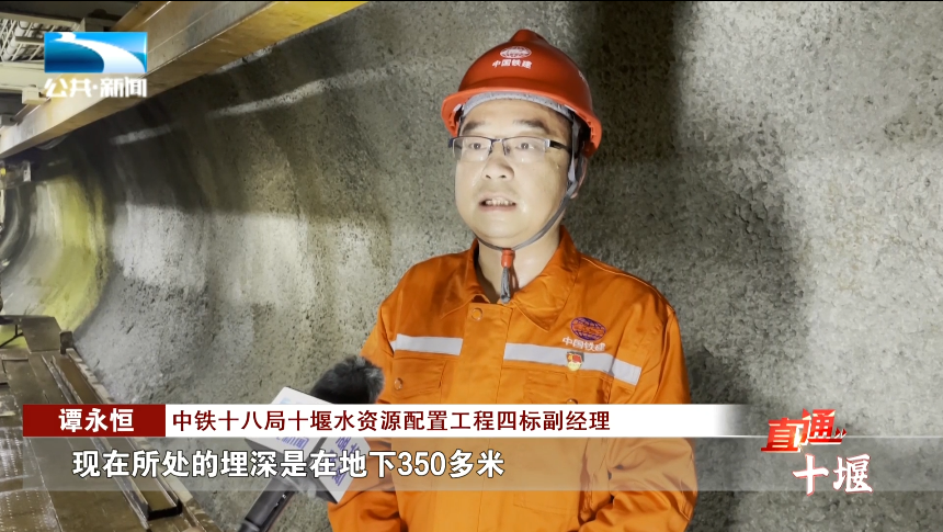 中铁十八局十堰水资源配置工程四标副经理 谭永恒:“现在所处的埋深是在地下350多米,隧道洞内常年温度在35到40度,隧道内的施工环境特别艰难。”
