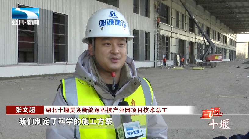 湖北十堰昊朔新能源科技产业园项目技术总工 张文超:“我们制定了科学的施工方案,确保人、材、机的储量满足需求,并增加现场检查频次,及时消除冬季施工各类安全隐患,同时保证300名工人入场进行三班倒施工,确保月底如期交付使用。”