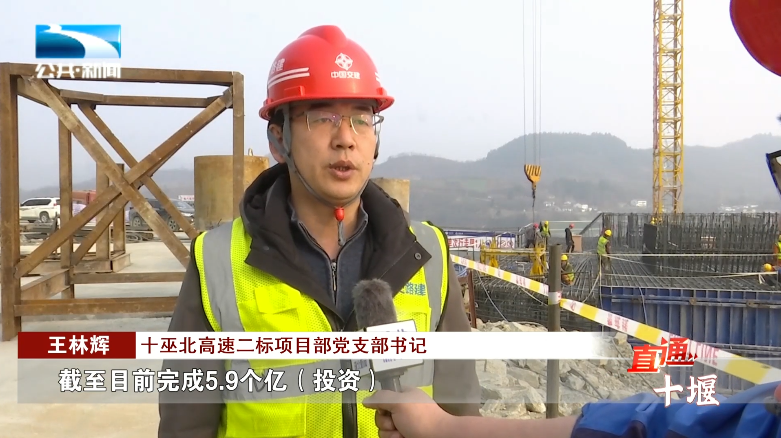 十巫北高速二标项目部党支部书记 王林辉:“截至目前完成5.9个亿投资,完成总体的37%,我们两个主塔力争今年年底封顶。”