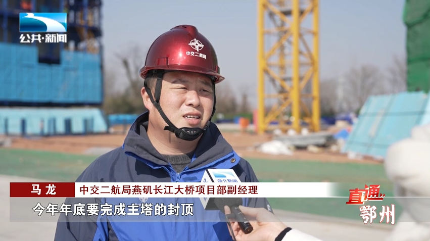 中交二航局燕矶长江大桥项目部副经理 马龙:“2023年是迎来我们燕矶桥建设的一个非常关键的一年,今年年底要完成主塔的封顶,我们也引进了关键施工的设备,整个施工质量上会较原来的有大幅度的改进和提升。”