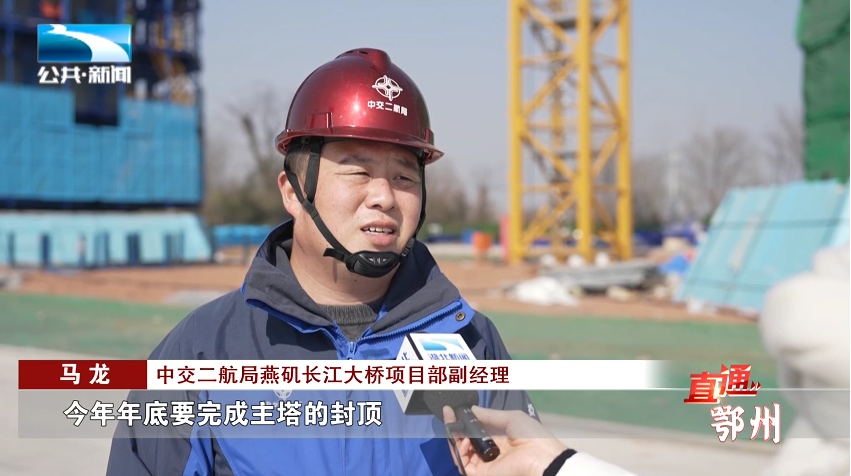 中交二航局燕矶长江大桥项目部副经理 马龙:“2023年是迎来我们燕矶桥建设的一个非常关键的一年,今年年底要完成主塔的封顶,我们也引进了关键施工的设备,整个施工质量上会较原来的有大幅度的改进和提升。”