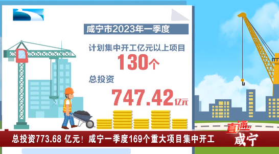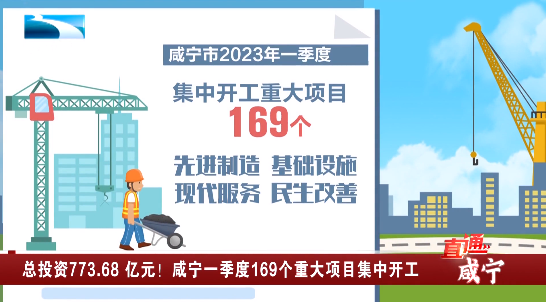 1月31日,咸宁市举行2023年一季度重大项目集中开工活动,涉及项目169个,总投资773.68亿元。