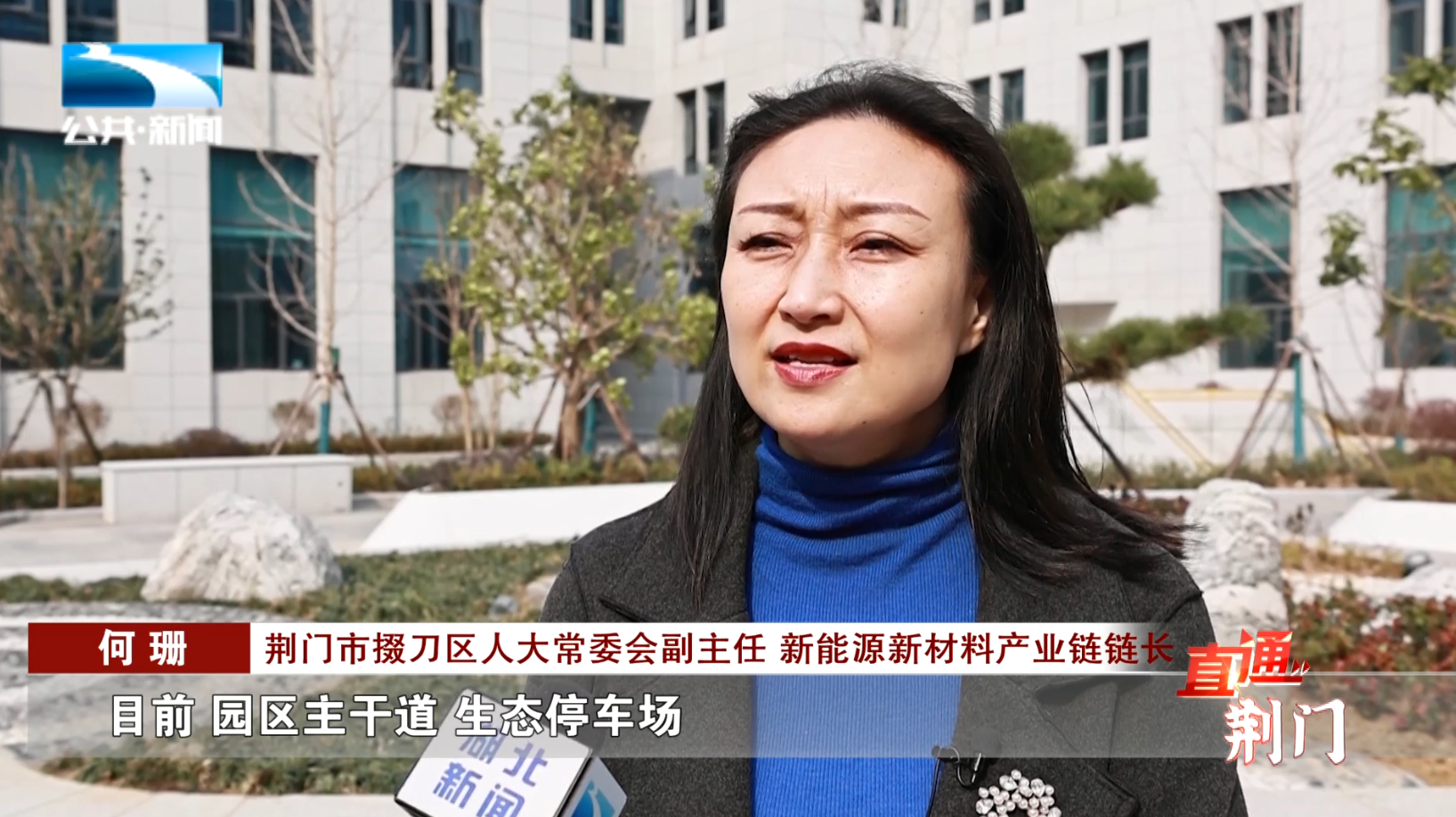 荆门市掇刀区人大常委会副主任、新能源新材料产业链驻点链长 何珊:“目前,园区主干道、生态停车场、人才公寓等一批公共配套项目已经启动建设,下一步,我们将突出‘宜居 韧性 智慧’的理念,全力将国际能谷·锂电小镇打造成全省产城融合的示范和标杆。”