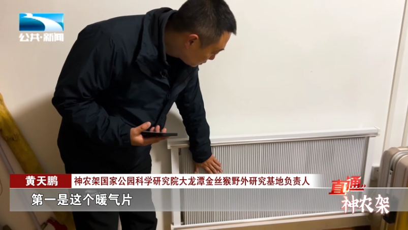 神农架国家公园科学研究院大龙潭金丝猴野外研究基地负责人 黄天鹏:“现在我手机上显示的我们大龙潭的温度是0℃,但是看这个现在显示的是13.7℃,这个温度从哪里来的,第一是这个暖气片,第二就是我们现在看到的天上的云暖,这些看到跟灯板一样的,它其实都是发热的。”